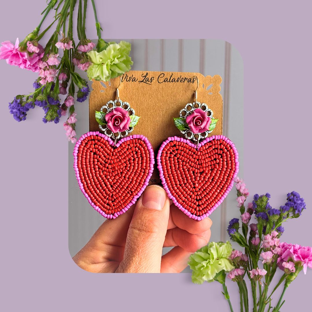 These are unique, handmade, migajon floral earrings.