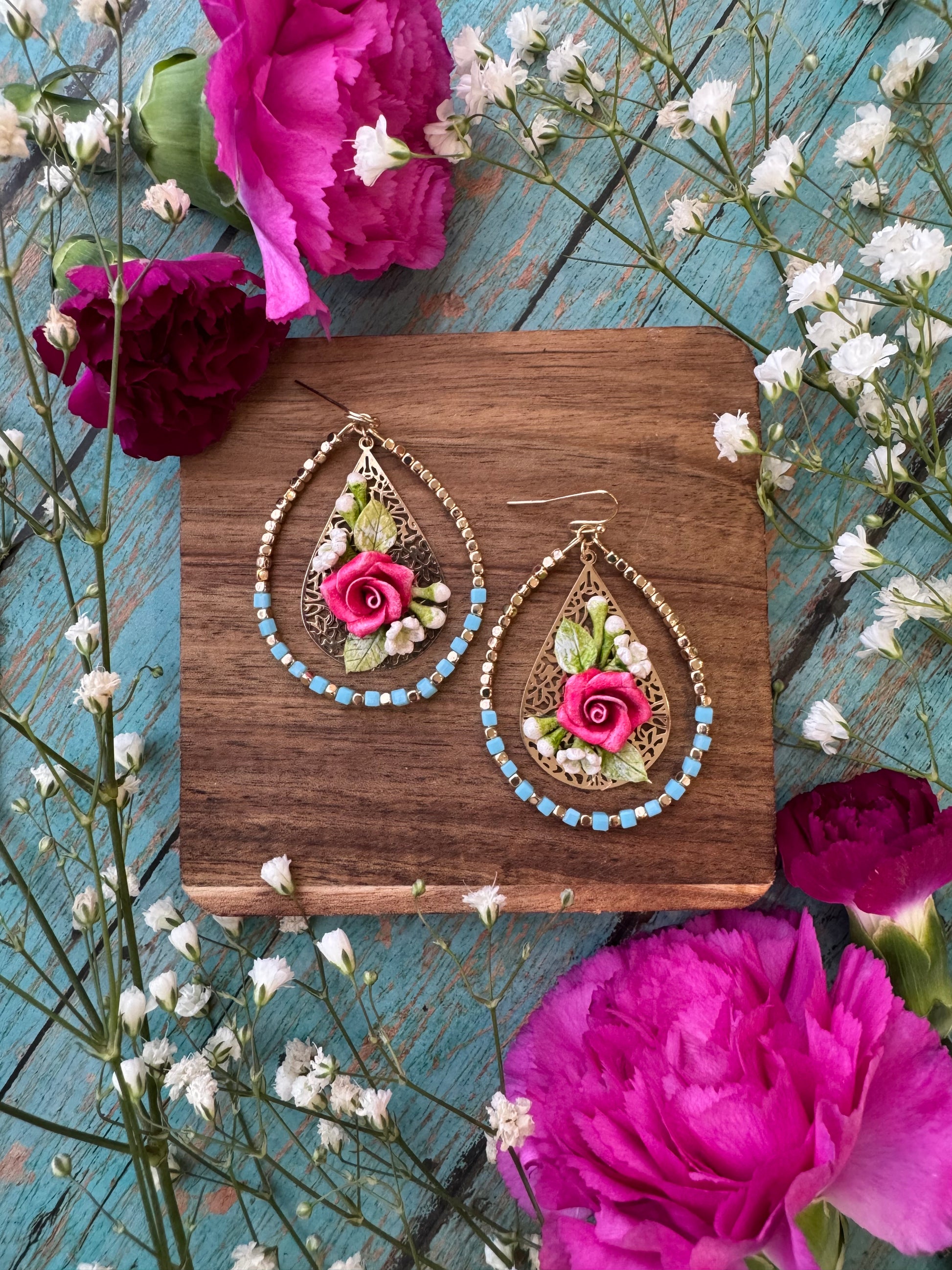 These florals are created using Migajon, a Mexican art taught to me by my Abuelita Reyna . All floral elements are hand sculpted and hand painted by me.