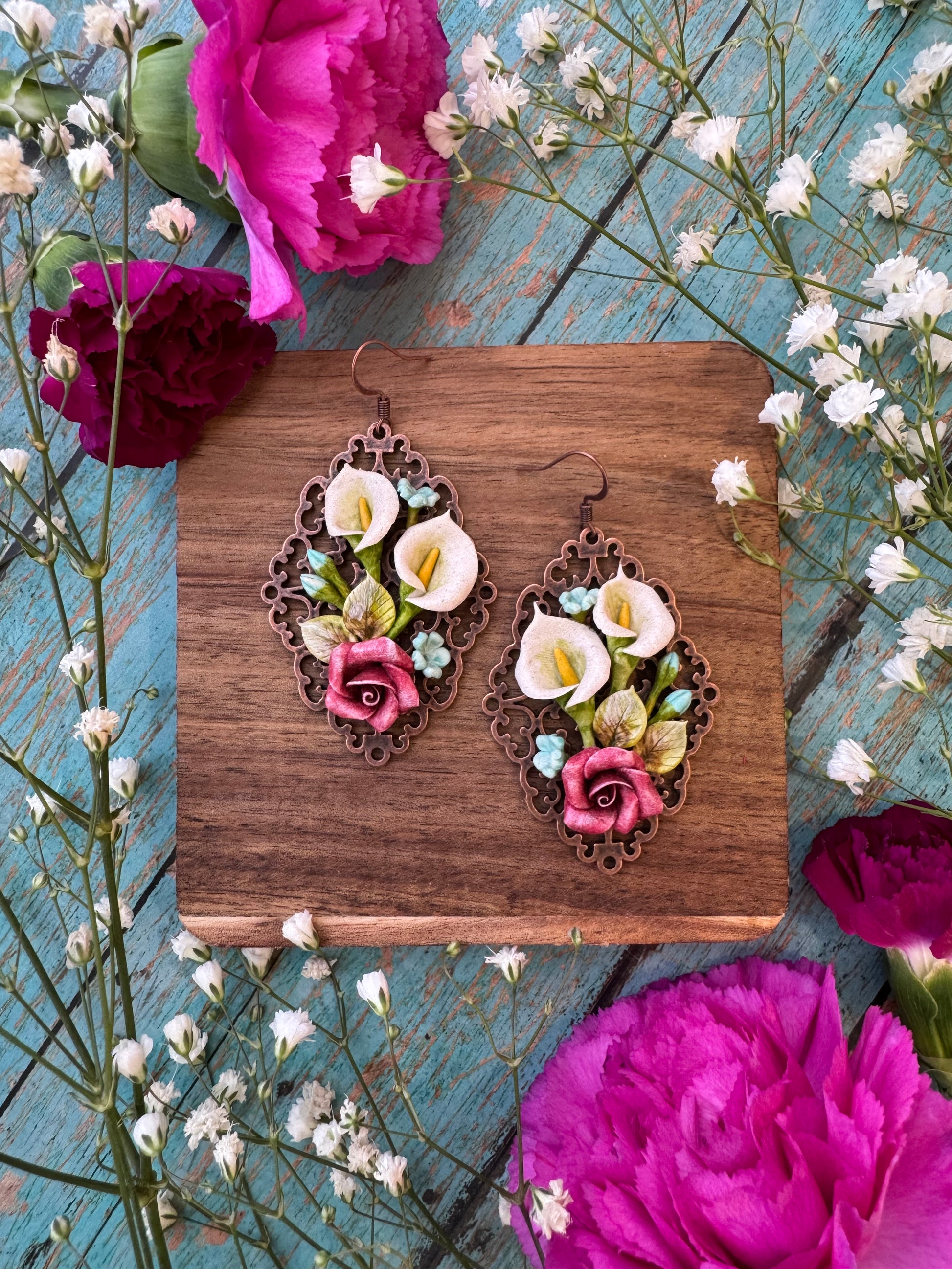 These florals are created using Migajon, a Mexican art taught to me by my Abuelita Reyna . All floral elements are hand sculpted and hand painted by me.